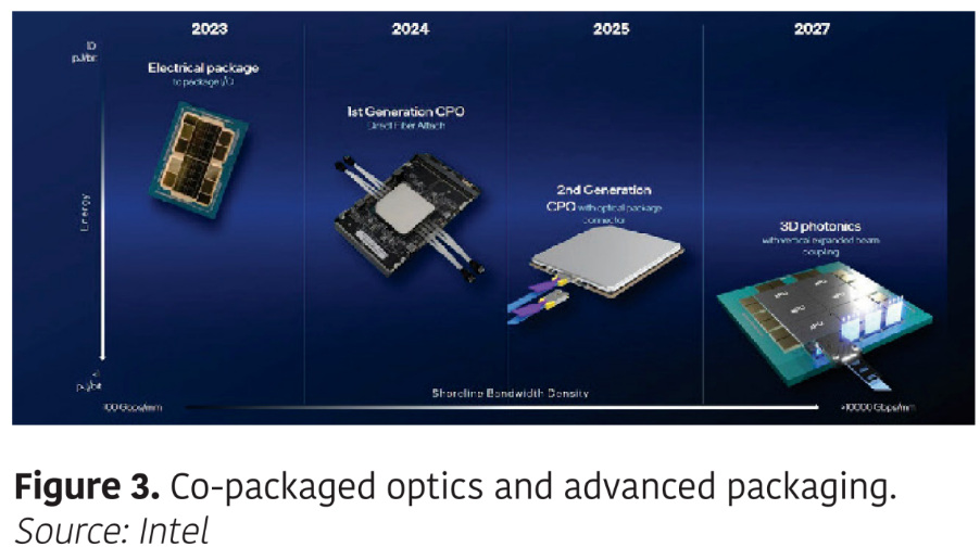At data rates exceeding 224 GT/s, electrical interconnects are approaching practical limits, driving industry interest in optical interconnects and co-packaged optics. Integrating silicon photonics with computational silicon offers a pathway to reduce power consumption for long-distance data transmission while increasing bandwidth and transmission distance (Figure 3).